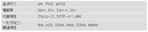 ■<参考資料>「ラピッドポイント500」測定項目一覧