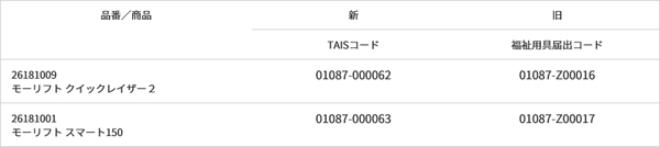 【モーリフト】福祉用具届出コードからTAISコードへ変更のご案内