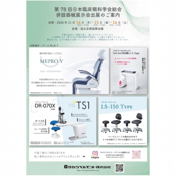 さて、このたび弊社では『第78回日本臨床眼科学会総会 併設器械展示会』に