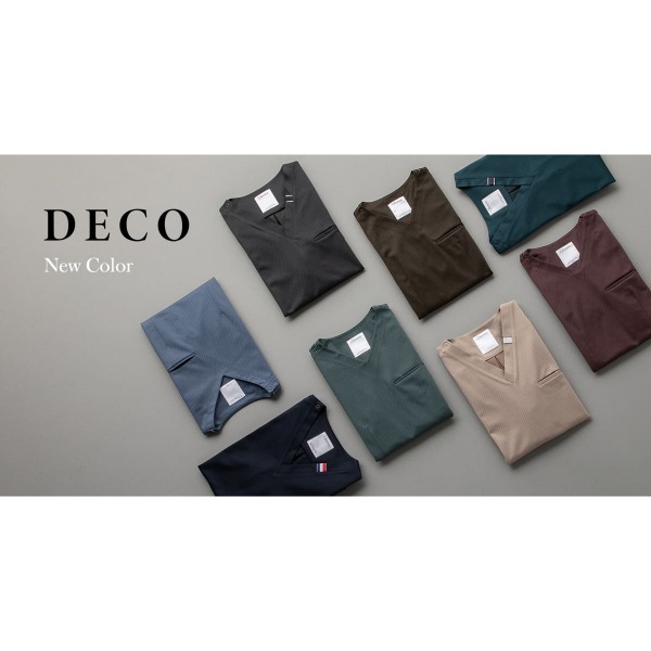 業界初、素肌にそのまま身に付けてもサラサラと軽い着心地の素材を開発して誕生した「DECO(デコ)」シリーズ。ウール調の上質な生地ですが、一年を通して快適に身に纏うことができます。