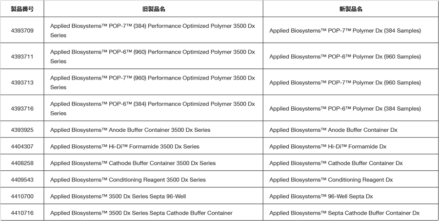遺伝子解析装置アプライドバイオシステムズ 3500 Dx用 消耗品製品名変更のお知らせ