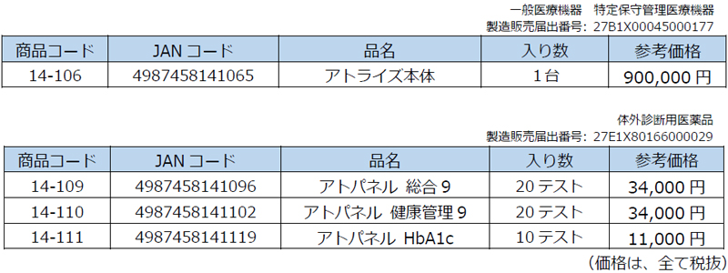 パック式臨床化学分析装置/クラスI生化学・免疫検査用シリーズ「アトライズ®/アトパネル®」新発売のご案内