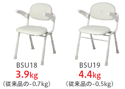「ユニプラス コンパクトシャワーチェア(ライトタイプ)/BSU18」「ユニプラス ミドルシャワーチェア(ライトタイプ)/BSU19」を発売いたします。