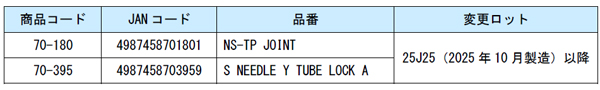 「シュアフロー®N」 NS-TP JOINTおよびS NEEDLE Y TUBE LOCK A 個包装 仕様変更のご案内