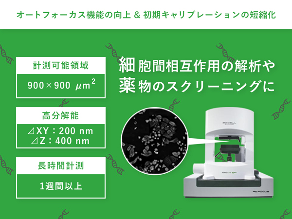 900 × 900 μm2の広領域計測が可能!単一細胞〜細胞集団までダイナミクスを追跡。