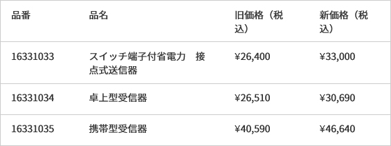 【コミュニケーション機器】ワイヤレスコール価格改定のお知らせ