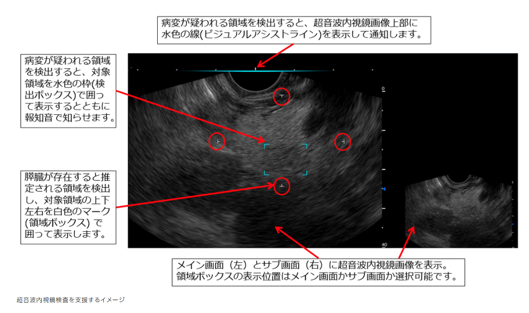 本ソフトウェアは、AI技術を活用して開発された、超音波内視鏡診断を支援する医療機器として、日本で初めて承認されたものです*3。