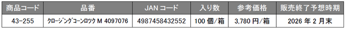 「クロージングコーン」 販売終了と後継品のご案内