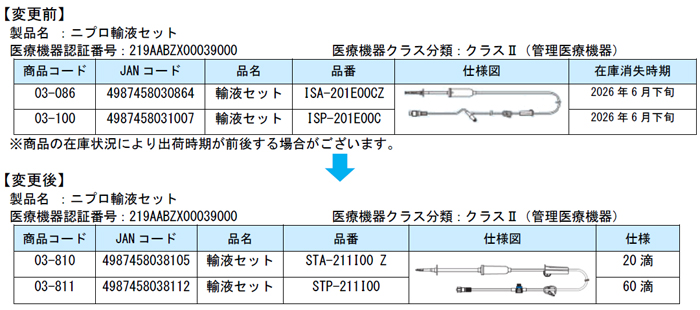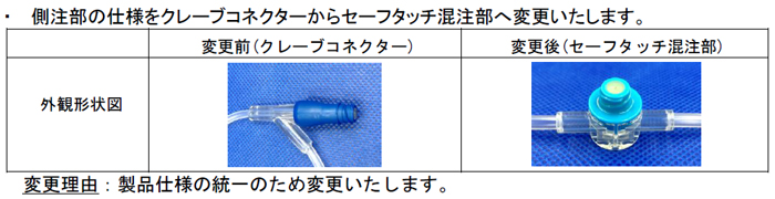 「ニプロ輸液セット」クレーブコネクター付品番 セーフタッチ混注部へ仕様変更のご案内