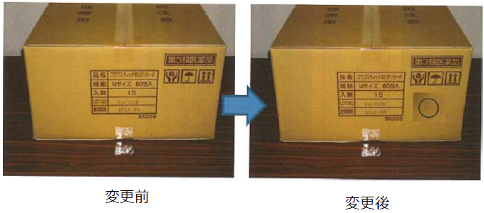 変更品については、外箱からでも判別できるよう、側面に「〇」印を記載しております。