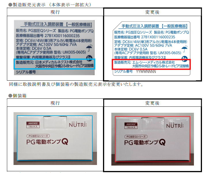 - 【ニュートリー株式会社】「PG電動ポンプQ」製造販売元及び個装箱の色変更のご案内 (2026-03-09)