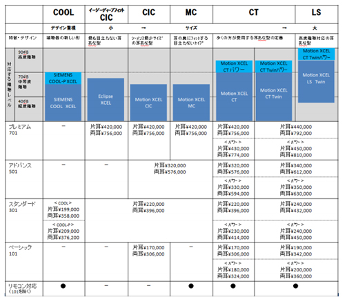 SIEMENS COOL-P XCEL 片耳\209,000、両耳\376,200