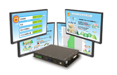 大型ディスプレイに対応した解像度(1280×720)を備え、多彩な画面表示が可能です。計測値画面(3画面)、環境コンテンツ(3画面)、グラフ(年報/月報/日報)、任意の画像(最大7画面)などが最大15画面まで設定でき、スライドショーとしてディスプレイに表示できます。環境コンテンツは用途に合わせて学校向けや企業向けなど5種類から選択できます。