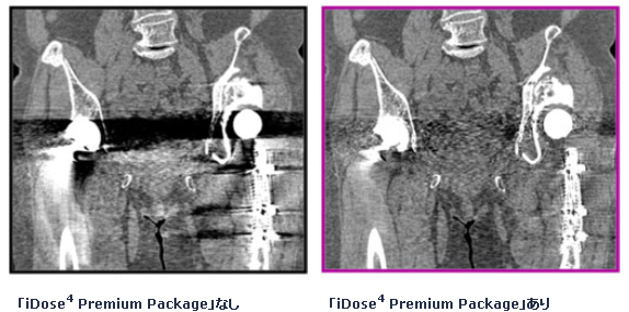 昨年10月にAuntMinnie(世界最大規模の放射線科情報ウェブサイト)よりBest New Radiology Softwareとして表彰を受けた逐次近似応用再構成である「iDose4 Premium Package」(アイドーズ フォー プレミアム パッケージ)を標準搭載し、低被ばくと高画質を高いレベルで実現します。また金属アーチファクトを抑制する技術により、整形インプラント周辺の組織に対する視認性が高まり、診断をより効果的にサポートします。昨年北米放射線学会(RSNA2012)で発表をしたシステムモデル逐次近似再構成技術である「IMR」(アイエムアール)をオプション搭載することも可能です。