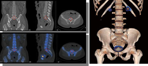 ※3 SPECT/CT装置には、診断用CTを組み合わせた装置と吸収補正用CTを組み合わせた装置の2種類がある。前者は診断用CT装置の高精細な形態画像とSPECT装置の機能画像を重ね合わせて、病変部位の位置特定と機能診断を一度に手がけることを目的とし、後者はCT画像をもとにSPECT画像に吸収補正を施すことでSPECT画像の画質を高め、診断能を向上させることを主たる目的としている。なお、CT画像は診断には使用しない