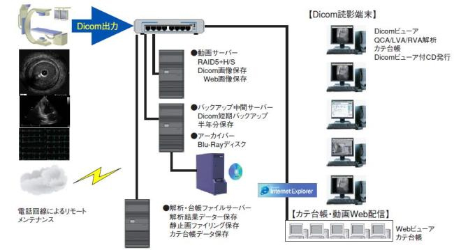 Cardiac Stationは循環器動画ネットシステム、心機能・狭窄率解析システム、カテ台帳システムから構成されており、目的に応じて単独もしくは自由に組み合わせて導入することが可能です。