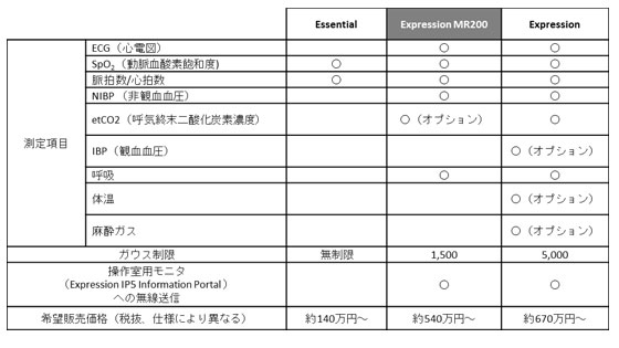 フィリップスMRI対応生体情報モニタ 製品特長一覧