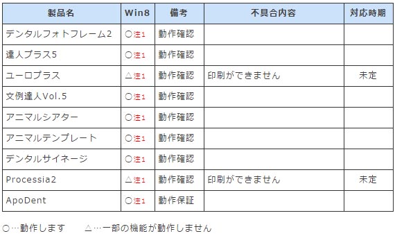 弊社ソフトウェア製品におきましてWindows8での動作確認状況について記載致します。