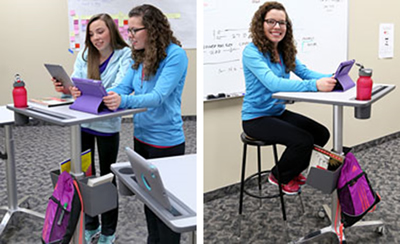 アメリカやオーストラリアでは「立ち上がって授業を受ける」スタイルのアクティブラーニングクラスルームがすでにスタートしています。「LearnFitII」は立ち上がることはもちろん、キャスター付きで自由に動くことができるので、生徒達はディベート用にグループを作ったり、タブレット画面を共有するために近くまで移動したり、教室内で活発な授業を行なうことができます。 立位などの軽度な身体活動は、血行促進やカロリー消費、筋力増大、インスリン作用の改善をもたらしますという論文が発表されています。つまり、健康促進と成績向上をサポートするLearnFitIIは、現代の学校生活に欠かせない存在といえます。もちろん、椅子を持って来て座ることもできるので、座って授業を受けることも可能です。