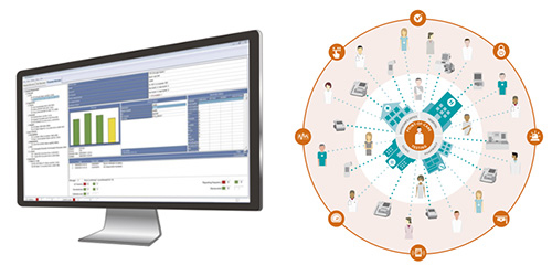 POCceleratorは、各医療現場に分散しているPOC検査装置を一元管理し、HIS/LISと連結することで、臨床現場のみならず管理部門の業務効率を大幅に改善します。また、各装置の精度管理、測定者情報や各種点検の記録なども管理できるため、常に信頼性の高い検査結果を診断・治療に活かすことができます。さらに、通信ネットワークの集約化によるコスト削減など、POC検査に関わる院内の様々な部署の幅広いワークフローを向上します。